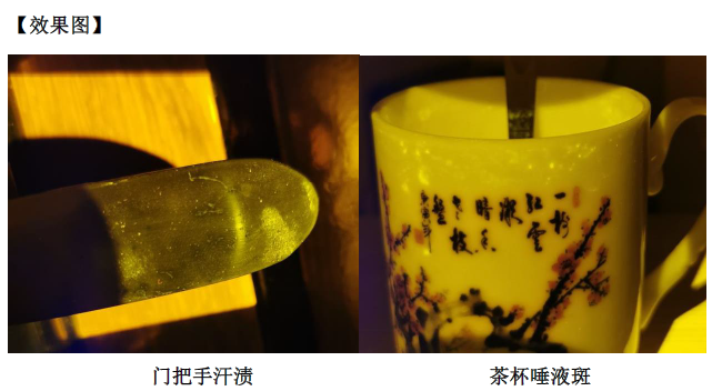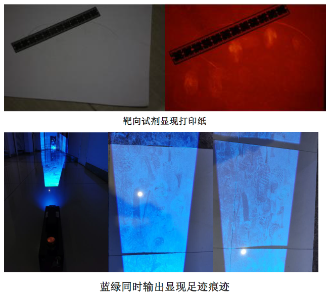 本設(shè)備適用于現(xiàn)場大范圍無損搜索各類生物物證,如:唾液斑、精斑、指甲、牙齒、骨骼碎片及涂料墻上指紋等。無需進(jìn)化學(xué)預(yù)處理,可以保證物證客體信息的真實(shí)性、完整性及生物活性;尤其對(duì)微量物證比其他光源有更好的發(fā)現(xiàn)效果。